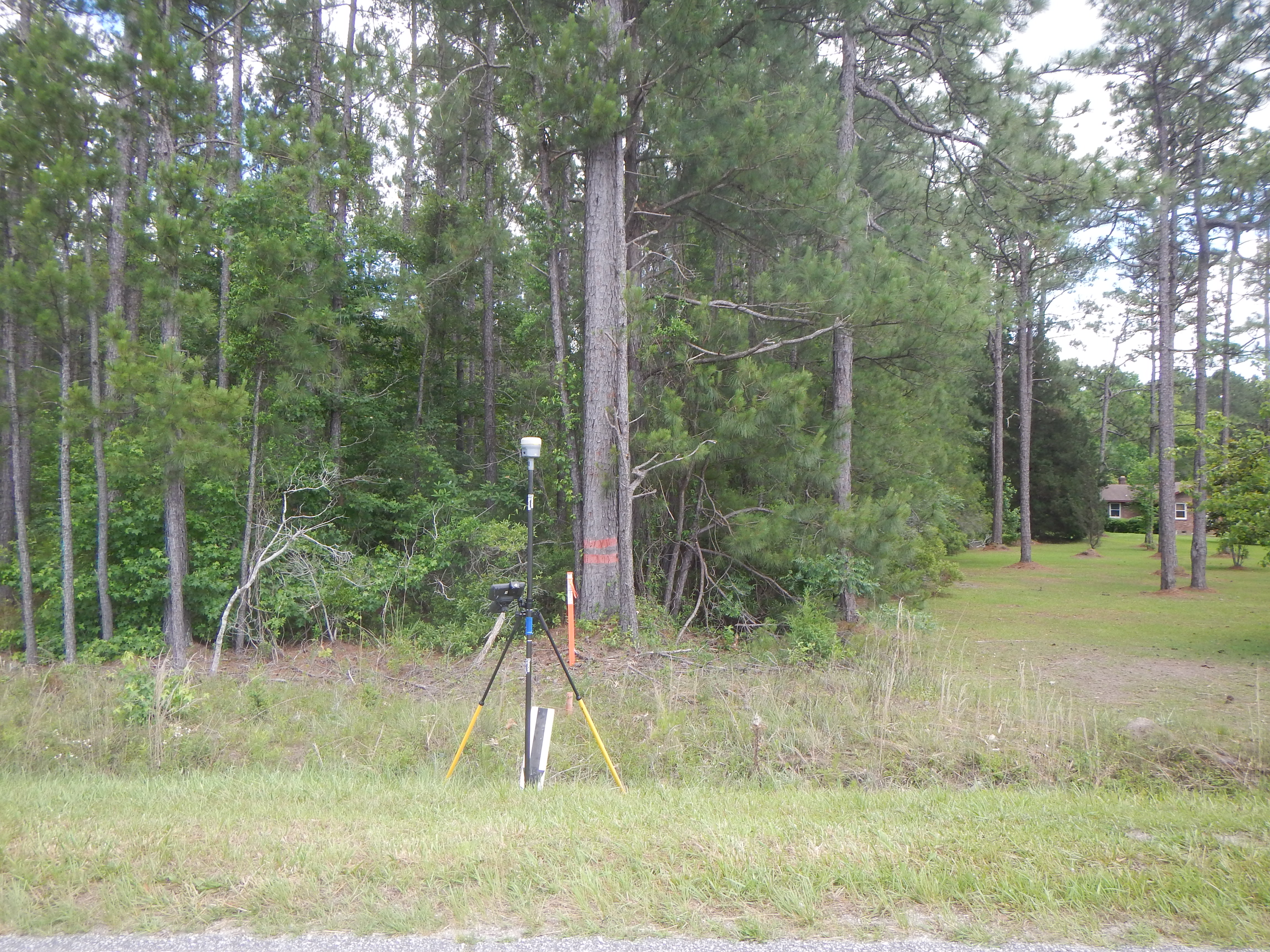 - Aerial of County Line Road to north east of Guinard’s Chaple showing deviation in road bend. CDW 7 16. United States Department of Agriculture. Courtesy South Carolina Forestry Commission.