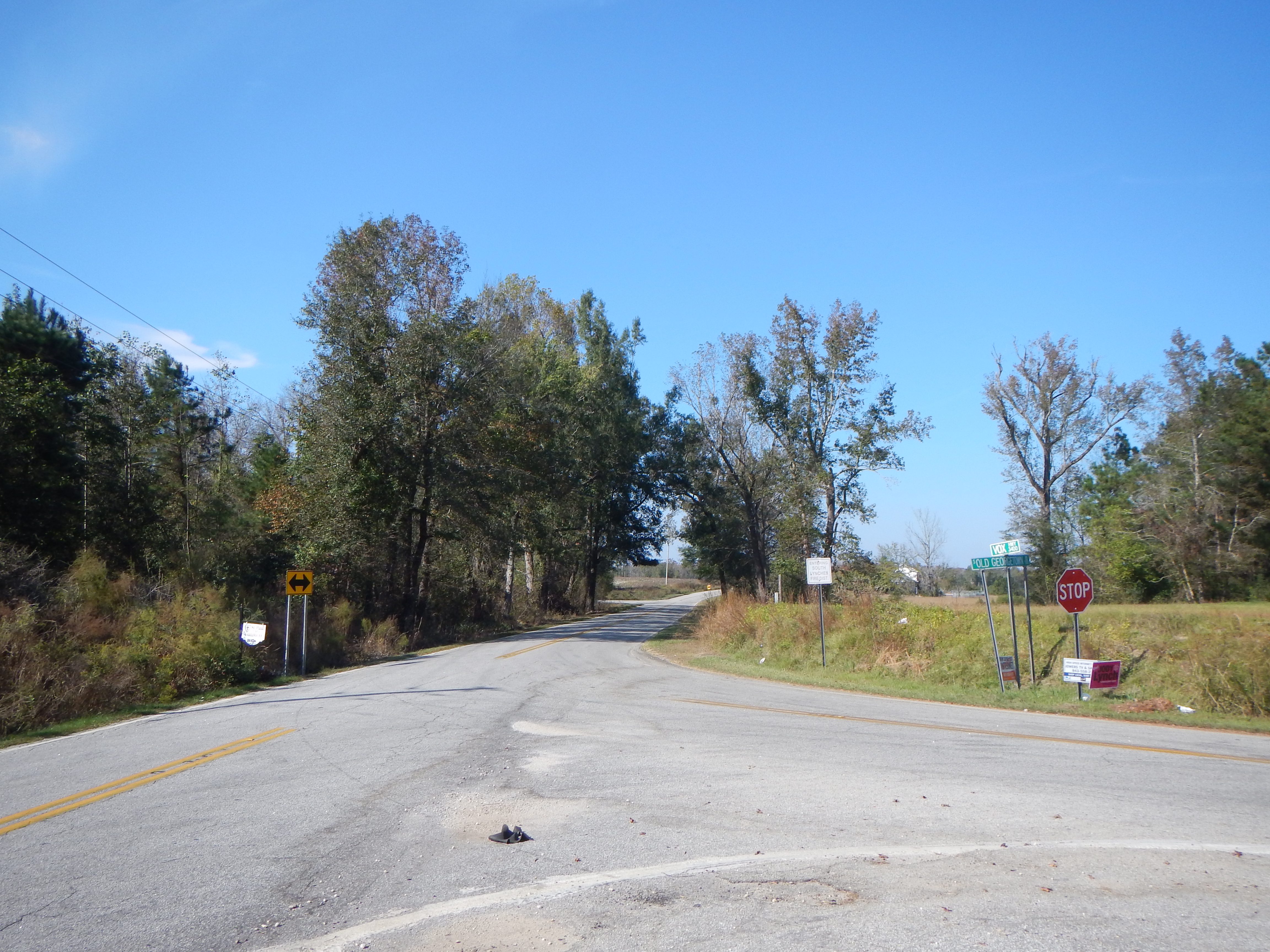 “…beginning at a point in the road leading to Lee's Cross Roads where the same crosses Lynch's Creek and running S. 12° 30' W. 1,943 feet; thence S. 8° 10' W. 526 feet; thence S. 14° 30' E. 1,119 feet; thence S. 25° 20' E. 730 feet; thence S. 72° 20' E. 43,610 feet to a stake at the road leading from Indian Town in Kingstree; thence N. 26° E. 316 feet; thence along the Kingstree road N. 71° 35' E. 10,094 feet; thence 504 feet along said road to the intersection of Owen's Swamp; thence 527 feet along said road; thence 806 feet along said road; thence northeast 711 feet; thence northeast 559 feet; thence E. 506 feet; thence southeast 1,225 feet to a point in the center of said road; thence northeast 3,380 feet along center of said road; thence 2,315 feet to where it intersects Flanagan's Creek…”