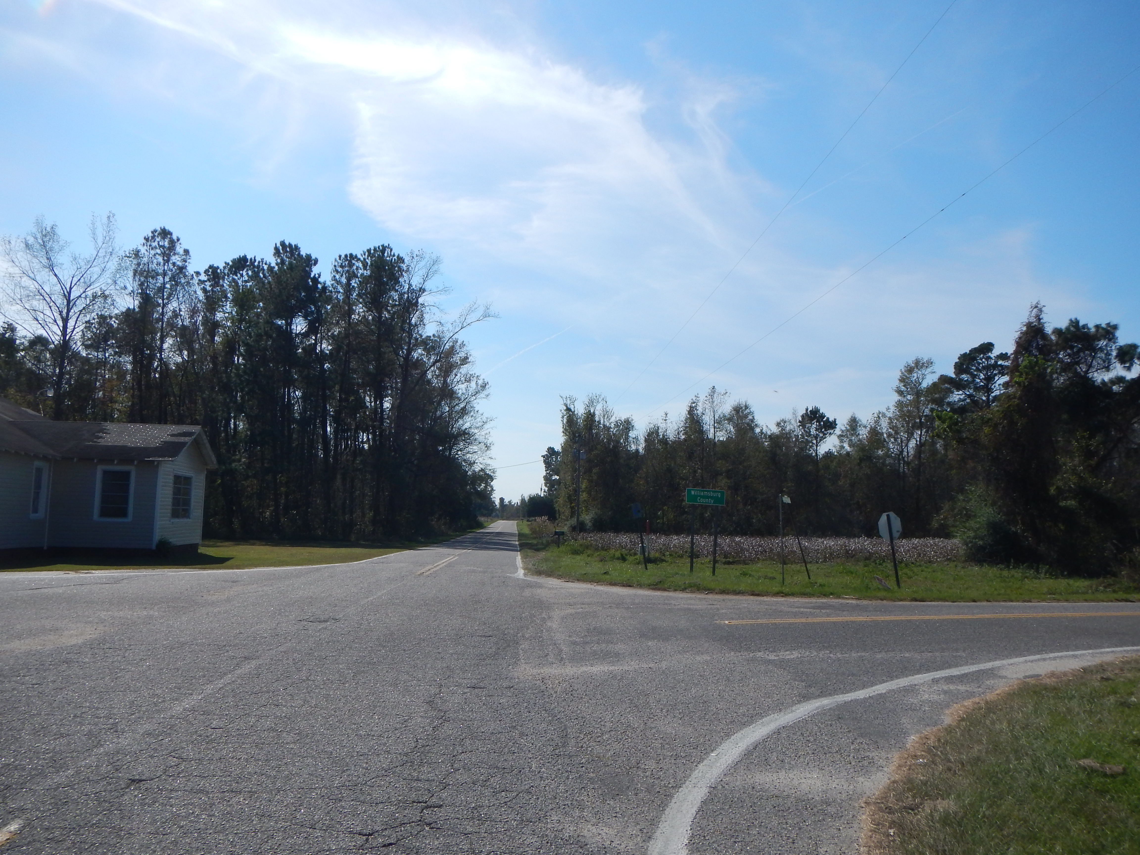 “…beginning at a point in the road leading to Lee's Cross Roads where the same crosses Lynch's Creek and running S. 12° 30' W. 1,943 feet; thence S. 8° 10' W. 526 feet; thence S. 14° 30' E. 1,119 feet; thence S. 25° 20' E. 730 feet; thence S. 72° 20' E. 43,610 feet to a stake at the road leading from Indian Town in Kingstree; thence N. 26° E. 316 feet; thence along the Kingstree road N. 71° 35' E. 10,094 feet; thence 504 feet along said road to the intersection of Owen's Swamp; thence 527 feet along said road; thence 806 feet along said road; thence northeast 711 feet; thence northeast 559 feet; thence E. 506 feet; thence southeast 1,225 feet to a point in the center of said road; thence northeast 3,380 feet along center of said road; thence 2,315 feet to where it intersects Flanagan's Creek…”