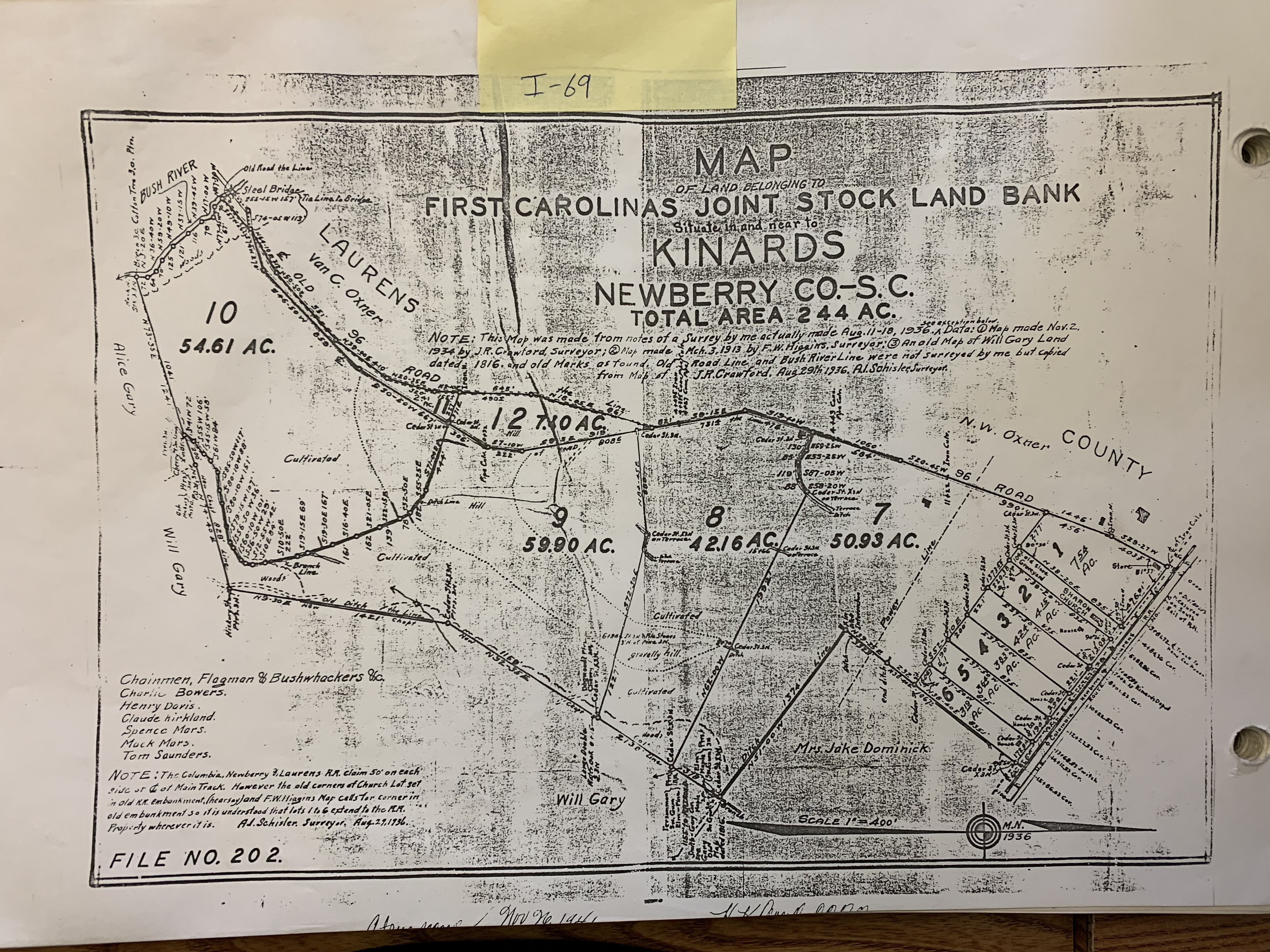 - BY A.I. SCHISLER: DATED AUG. 29, 1936; NEWBERRY COUNTY MB. I PG. 69.